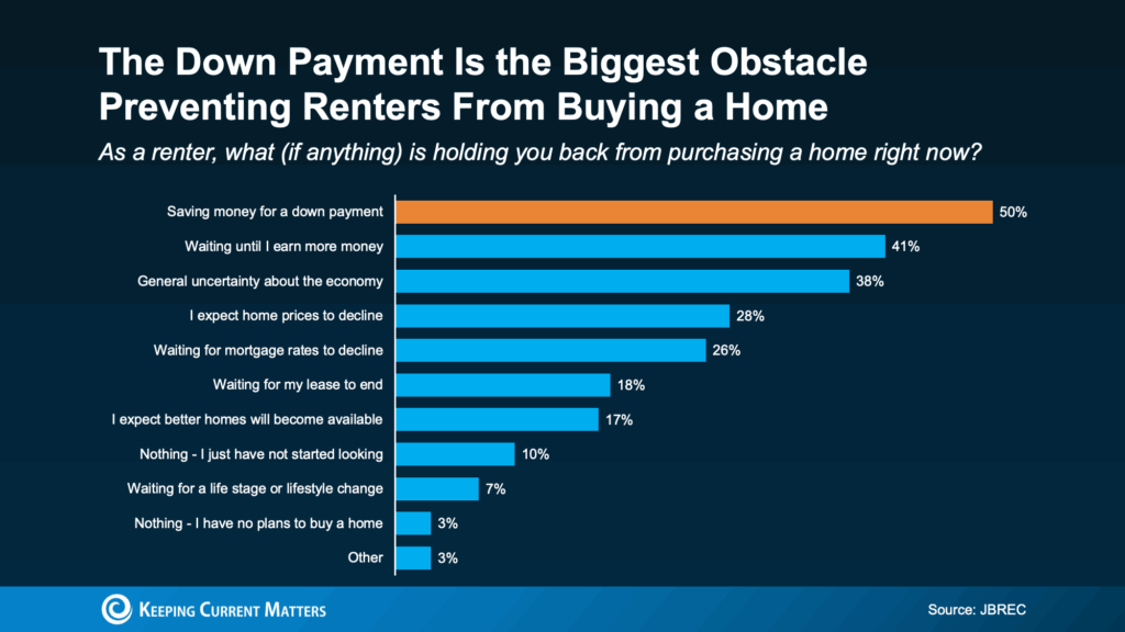 When John Burns Research & Consulting (JBREC) asked renters what’s keeping them from buying, the top answer wasn’t mortgage rates or home prices. It was the upfront cost, particularly saving enough for their down payment (see graph below):